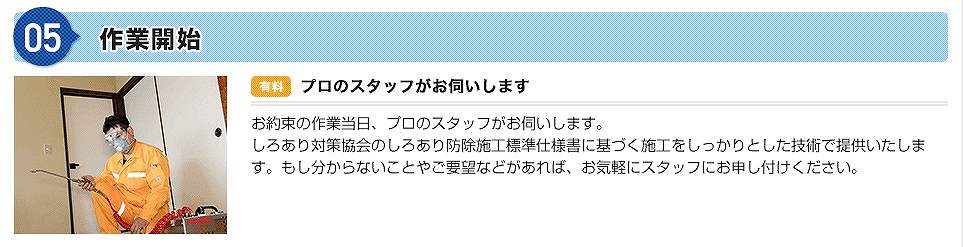 またこの段階より前に、必ず白アリ駆除後の5年保証の内容を確認してください。