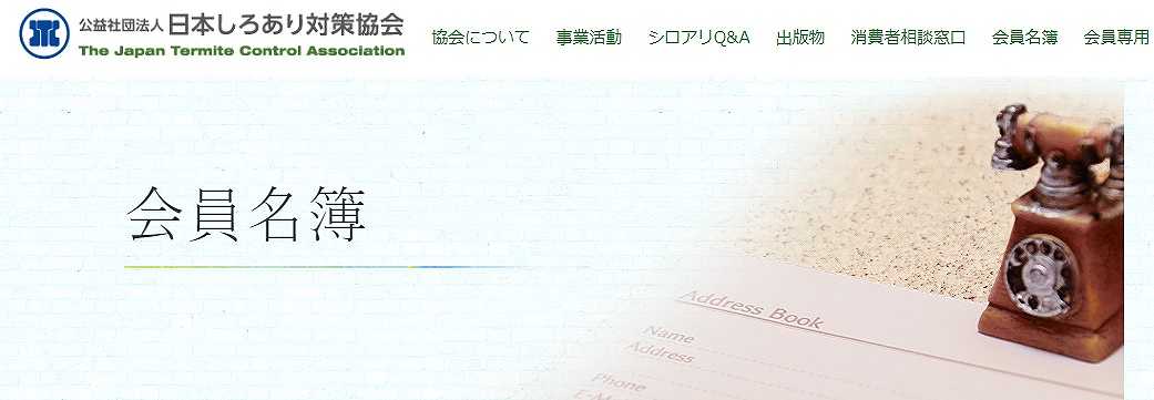 シロアリ駆除(防除)業者は北海道から沖縄まで、非常にたくさんありますが、どこの駆除業者を選べば良いのか分からないという方もいると思います。シロアリ駆除業者の選び方の1つが、対象のシロアリ駆除業者が「日本しろあり対策協会」の会員かという方法です。